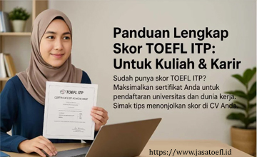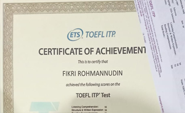 Sertifikat TOEFL adalah bukti kemampuan bahasa inggris anda yang tidak memiliki waktu untuk ikuti test toefl Bagi mahasiswa biasanya Sertifikat TOEFL ini menjadi acuan kelulusan sebelum akhinya ikuti sidang skripsi juga bisa di gunakan untuk melamar kerja cpns dan bumn serta perusahaan besar lain nya.Tes toefl ini masih menjadi salah satu tolak ukur utama pemahaman akan bahasa Inggris dengan demikian, tes TOEFL itp ets menjadi jembatan bagi murid-murid atau pekerja seperti kamu yang ingin melanjutkan jenjang ke studi atau pekerjaan ke negara dengan bahasa Inggris sebagai bahasa utama.